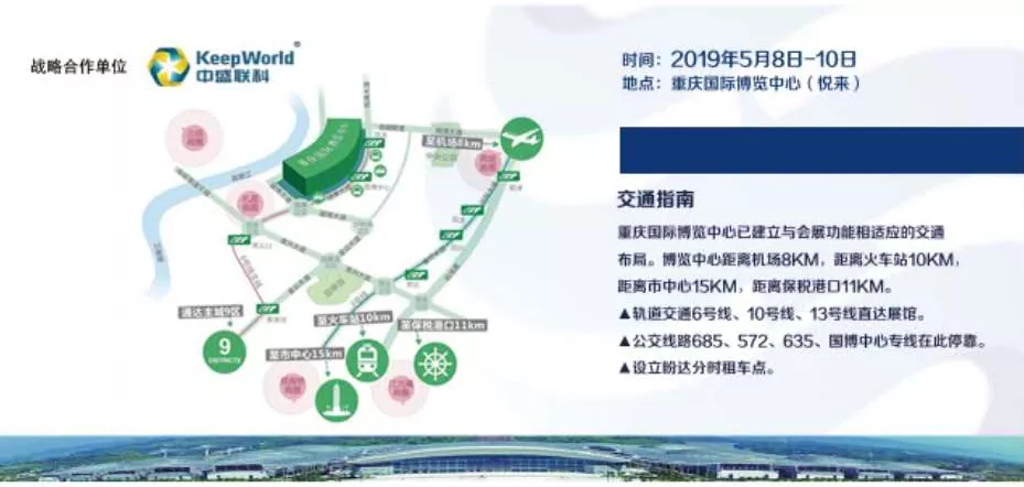 5月6日,飞机缓缓降落在江北机场,一座现代美丽的山城出现在我们的眼前。随着人群,步入机场大厅,2019中国(重庆)展会华丽的广告映入我们的眼帘,欢迎着每位远道而来的客人,期待着本次展会的到来。