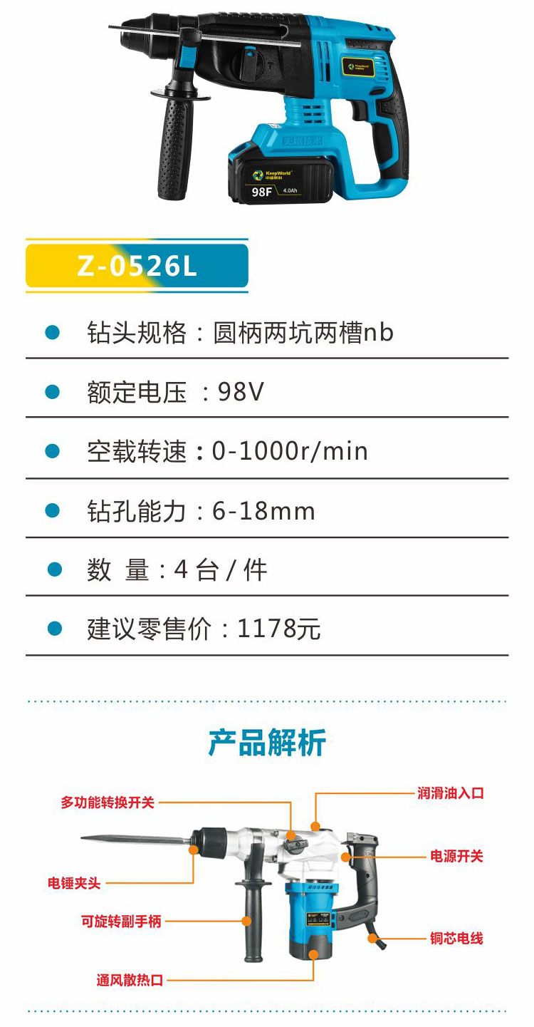 Z-0526L-98F无刷电锤